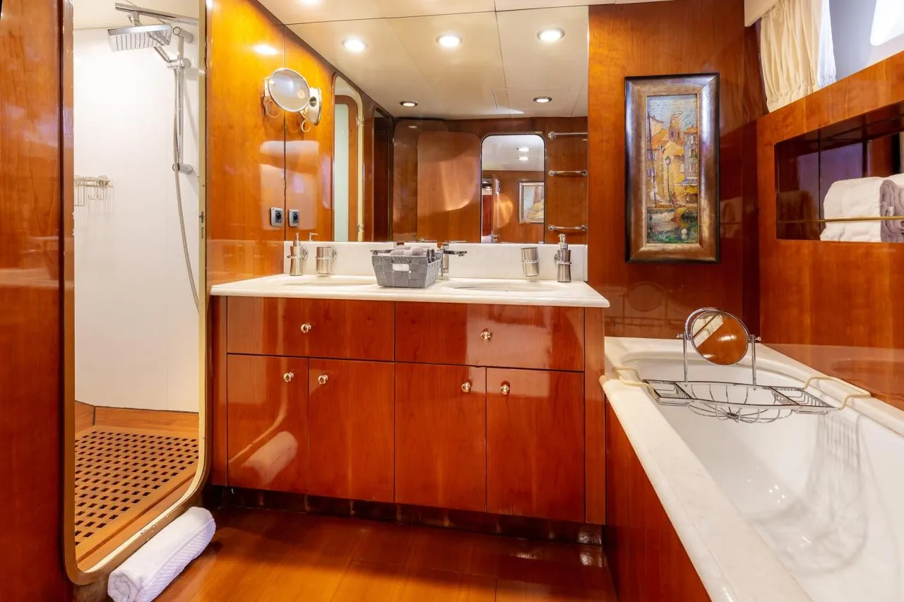 The Queen South, measuring 31 meters, is a motor yacht crafted by the renowned Italian shipyard Versilcraft. Built in 1988 and meticulously maintained over the years, she offers a delightful blend of classic charm and modern comfort, ideal for discerning guests seeking an exclusive cruising experience.